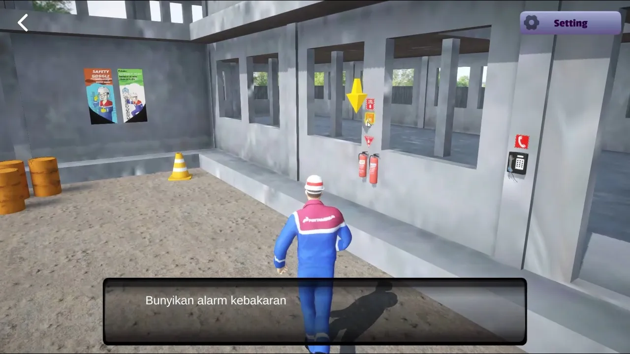 In a digital reality simulation, participants are dropped directly into highly realistic, daily public spaces like offices, gas stations, and kitchens, or hazardous industrial areas such as mining sites, factories, and construction zones. Before they even reach for a fire extinguisher (APAR), they are forced to actively evaluate their surroundings. They must check the wind direction and properly identify the classification of the fire. Are they dealing with burning wood, compromised electronics, liquid gas, or combustible metal?